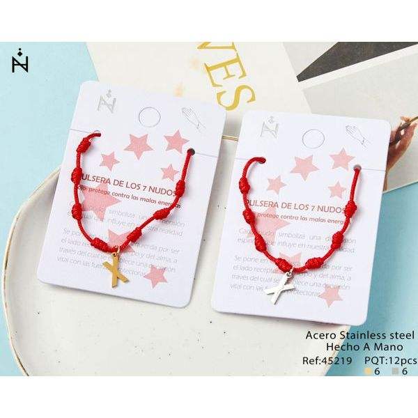 Bracelet à sept étoiles en fil rouge avec charme croix en acier inoxydable, fait main pour la protection et la chance, unisexe, à porter au quotidien