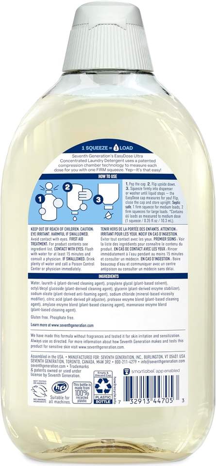 Détergent à lessive Seventh Generation EasyDose, ultra concentré : 66 brassées, sans parfum, conçu pour les peaux sensibles, 23,1 fl oz