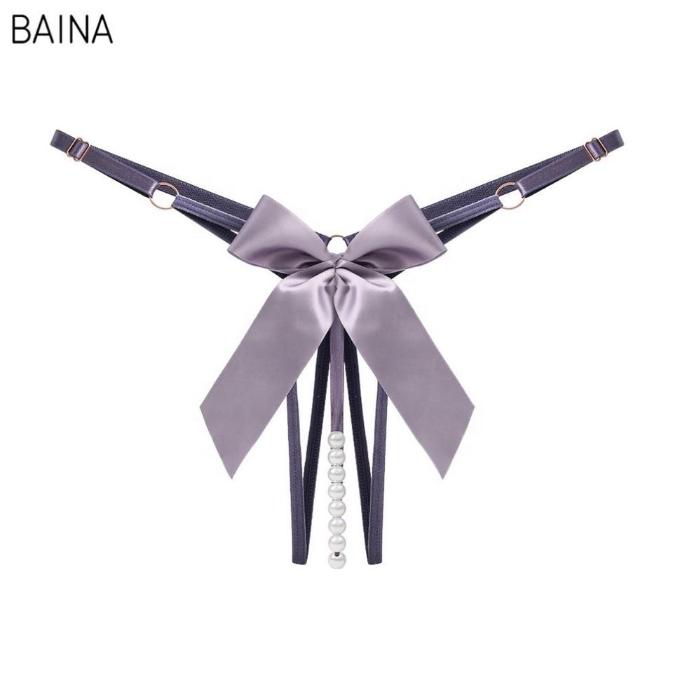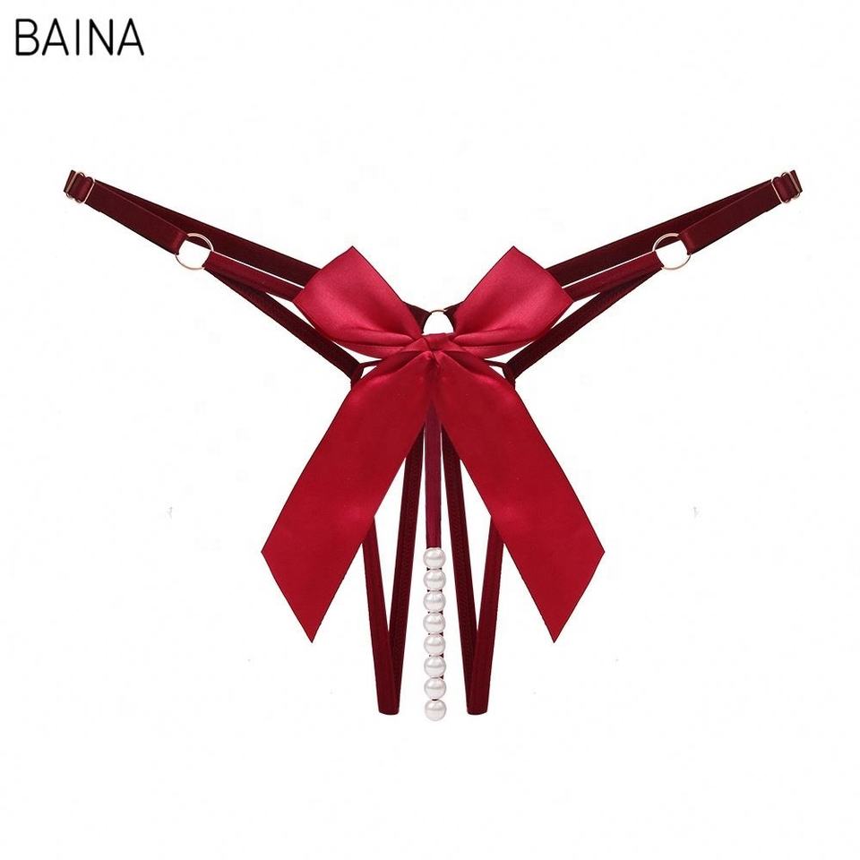 Culotte string en dentelle perlée blanche pour femmes, fille et papillon taille basse sexy avec nœud