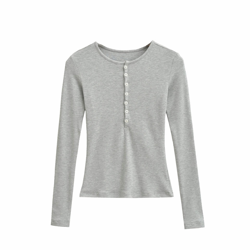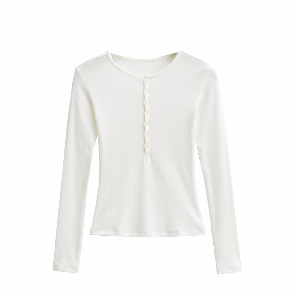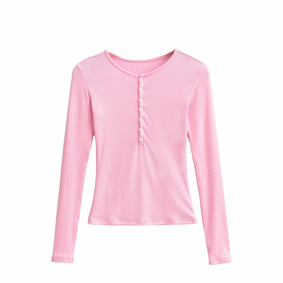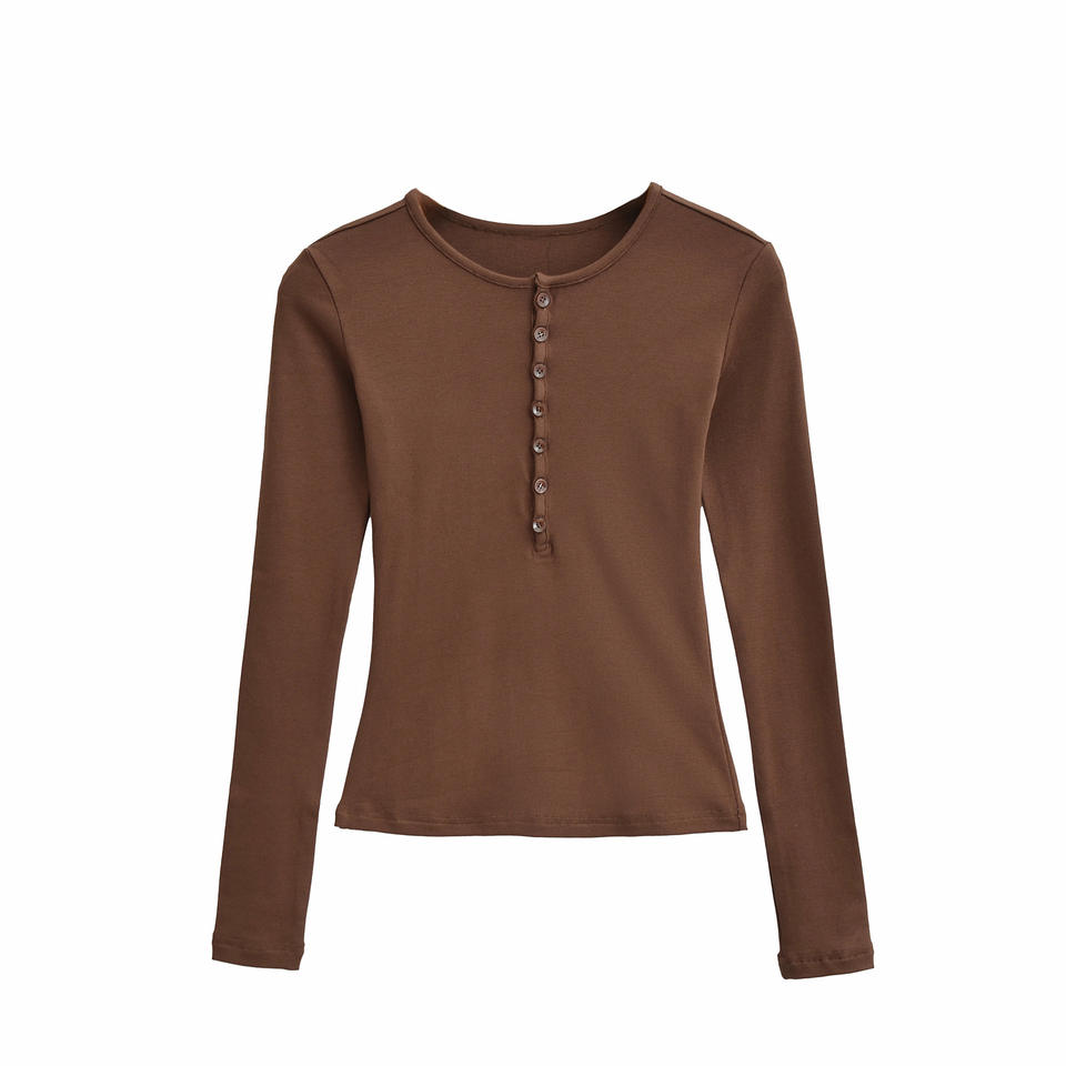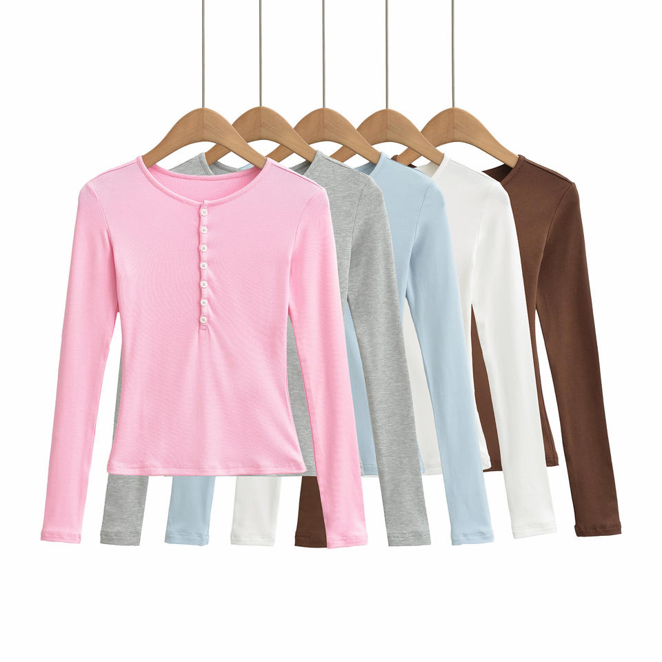 Haut de sport et de yoga pour femme, coupe courte, à col montant, manches longues, léger, respirant, extensible dans les quatre sens, avec design boutonné sexy