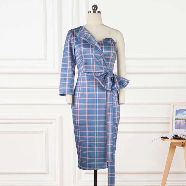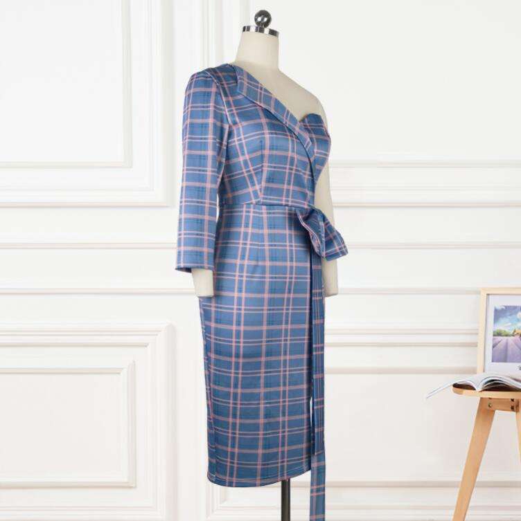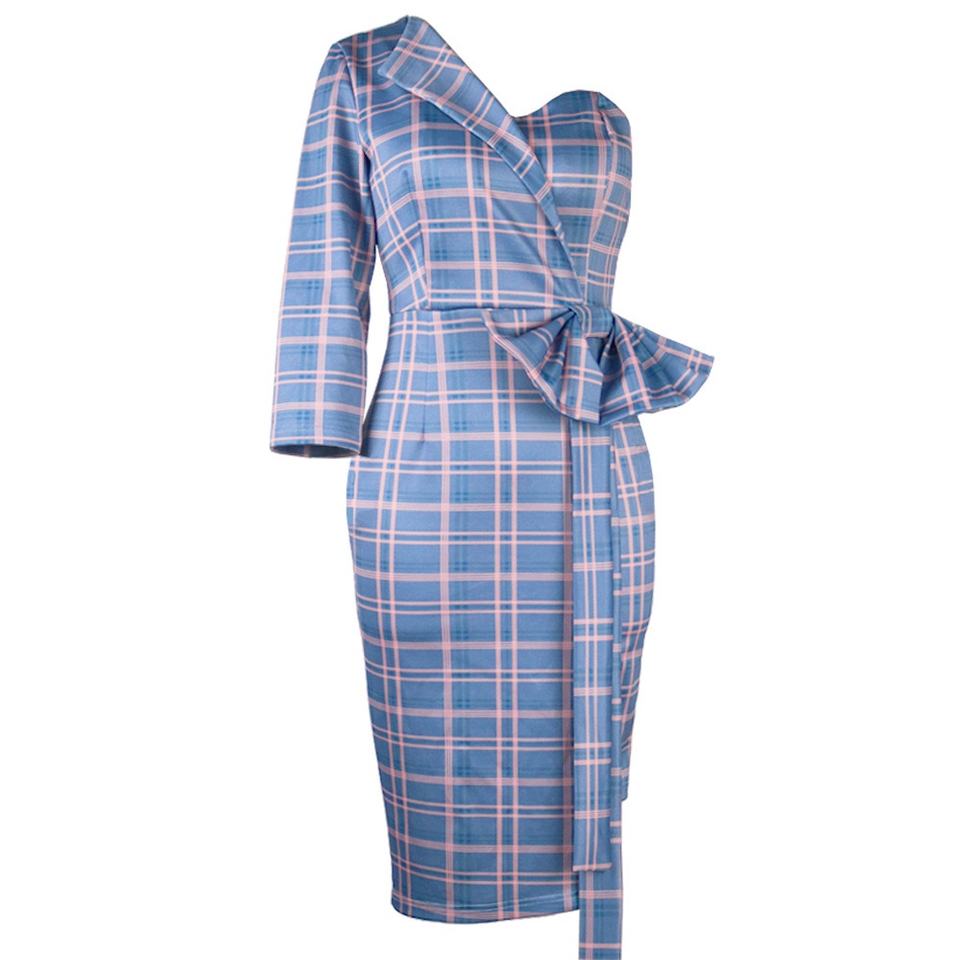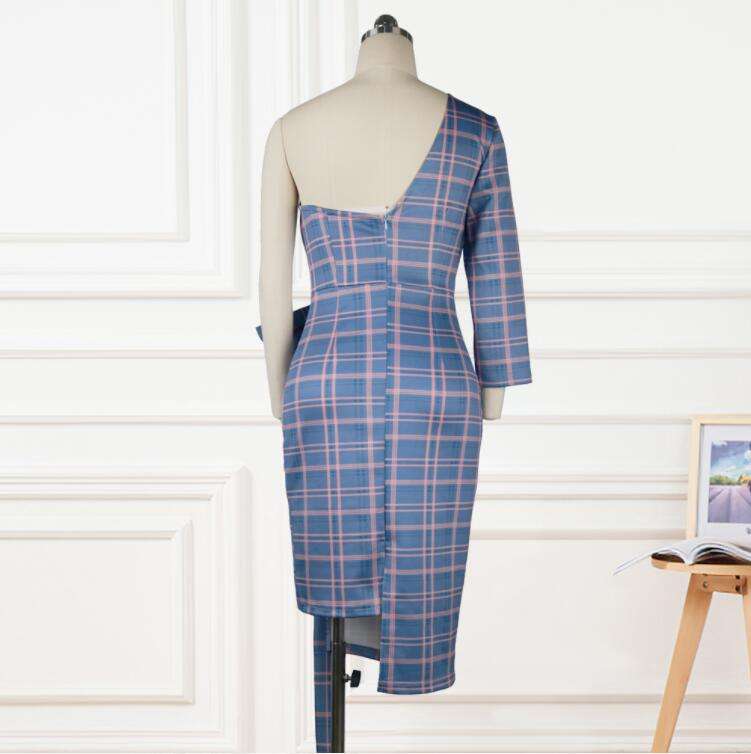 Sexy Chic Irrégulière Une Épaule Plaid Noeud Papillon Dames Robes De Bal