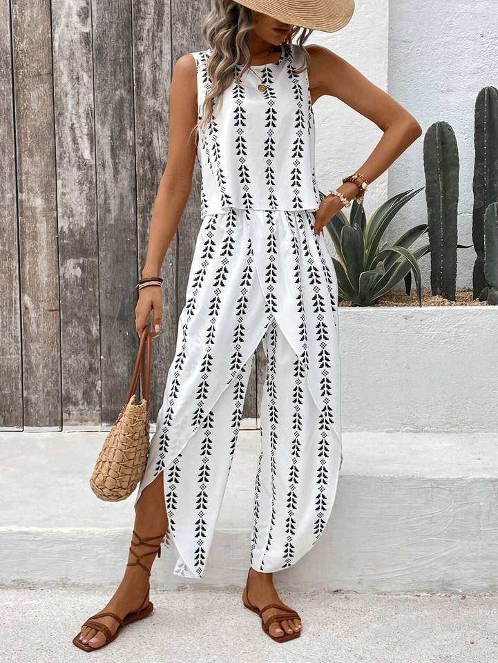 Ensemble en Chiffon Sexy Casual à Taille Haute Brodé avec Découpes Court Blanc Coordonné 2 Pièces