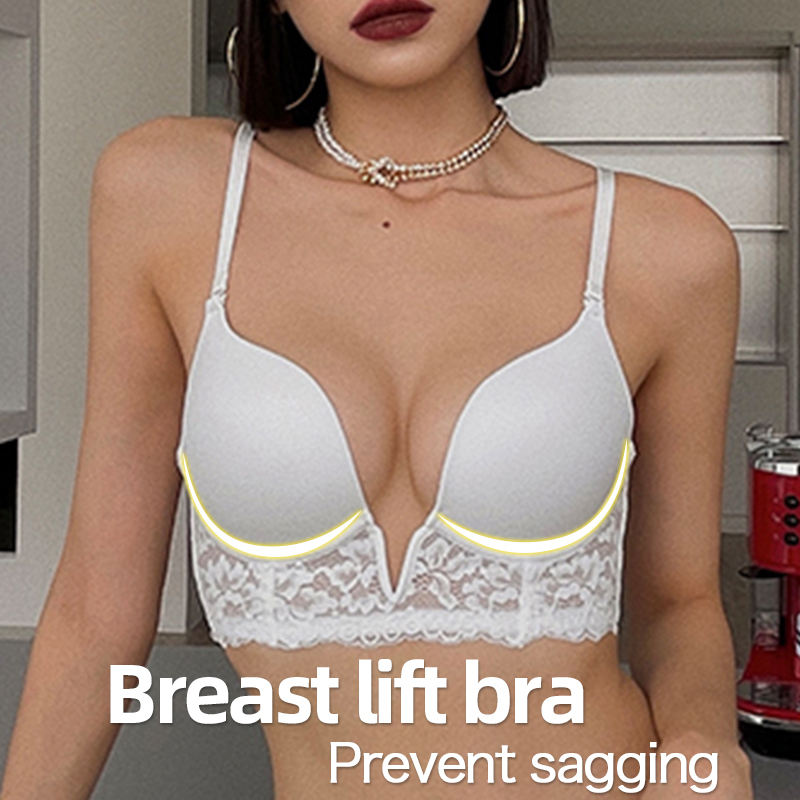 Soutien-gorge sans dos sans trace en dentelle profonde V sexy haute qualité sans fil collecte côté collection push up 85C prévenir l'affaissement soutien-gorge de levage des seins