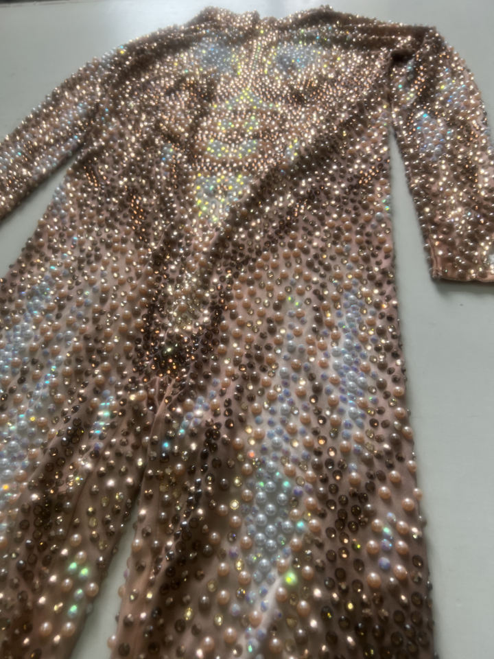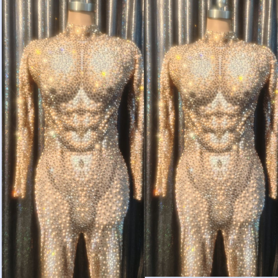 Combinaison de danse sexy à manches longues avec strass dorés pour homme, justaucorps brillant une pièce pour spectacle sur scène