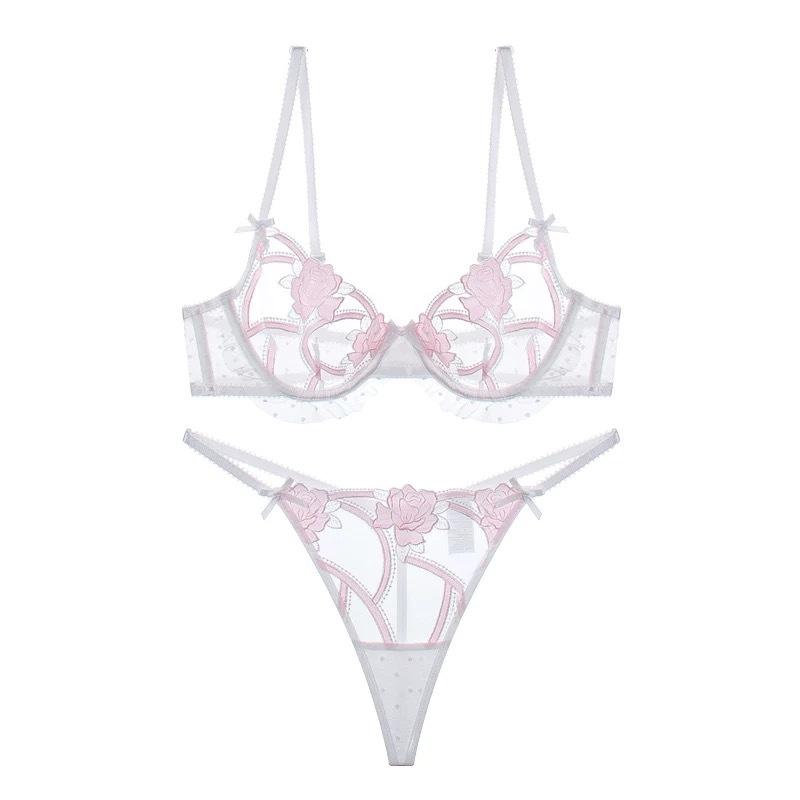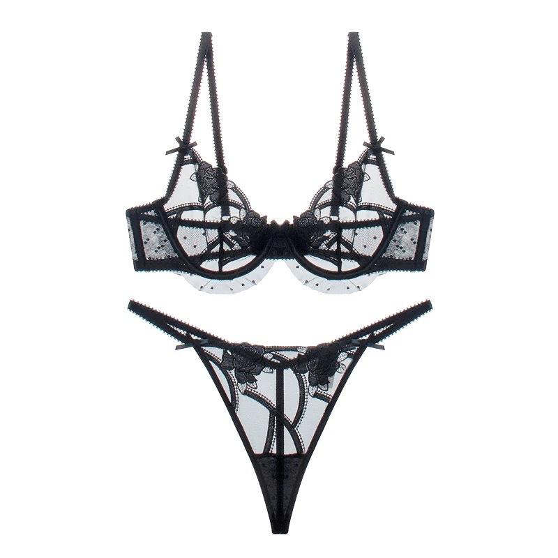 Ensemble de lingerie sexy en dentelle brodée taille plus pour femme, ensemble de soutien-gorge et culotte en 2 pièces, ensemble de lingerie en maille transparente en gros