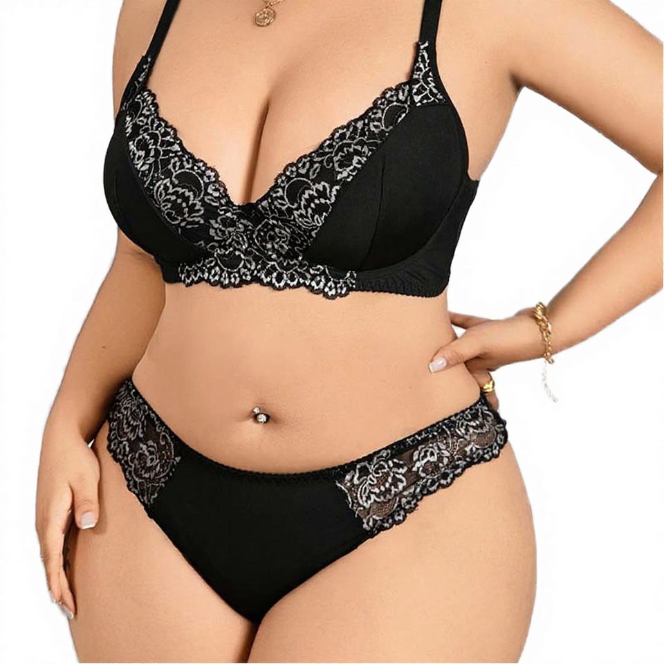 Ensemble soutien-gorge sexy grande taille sans armatures, rembourré, push-up, coupe haute, bonnet complet, uni, effet galbant, sans couture, confortable et respirant