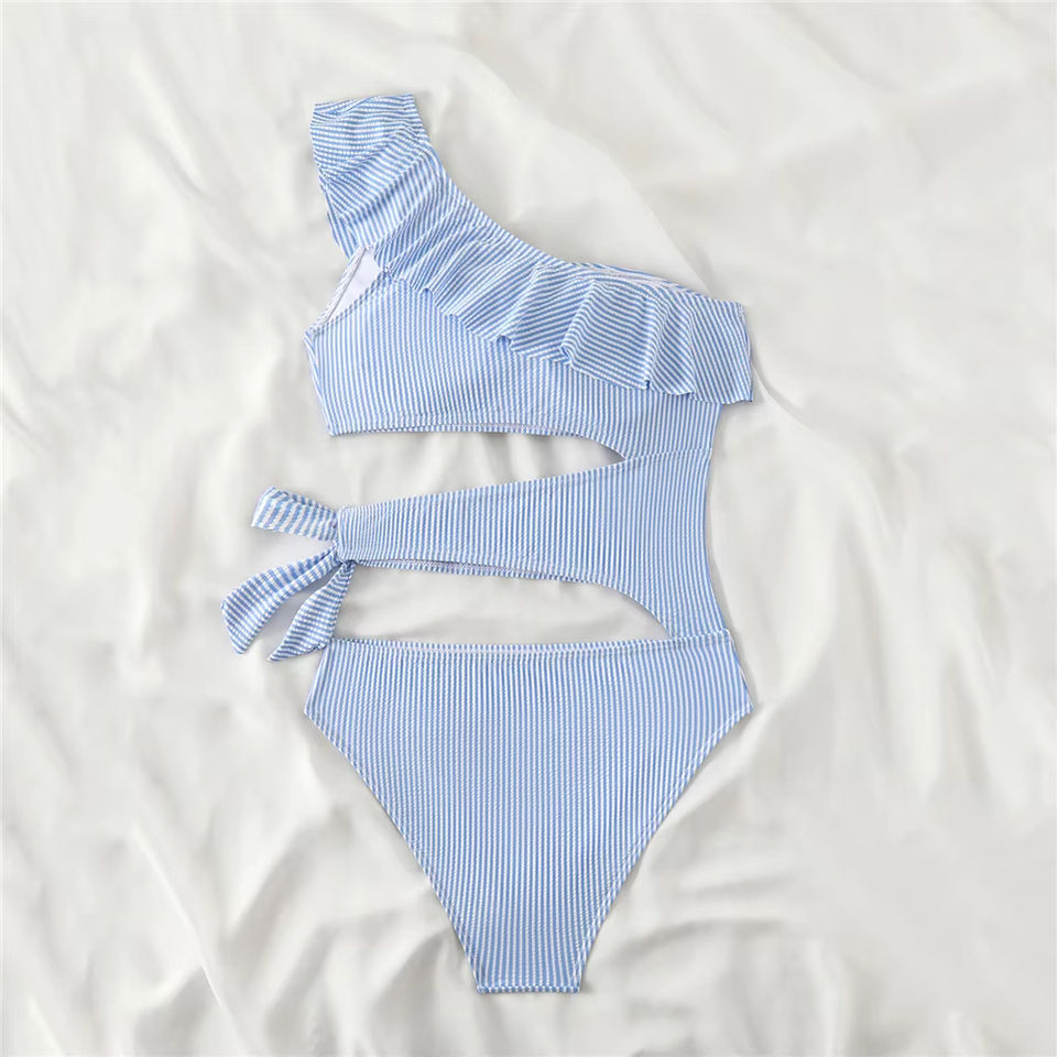 Maillot de bain sexy à volants asymétrique imprimé animal pour femme, ensemble 2 pièces avec ceinture bandage, séchage rapide, collection Plage 2025
