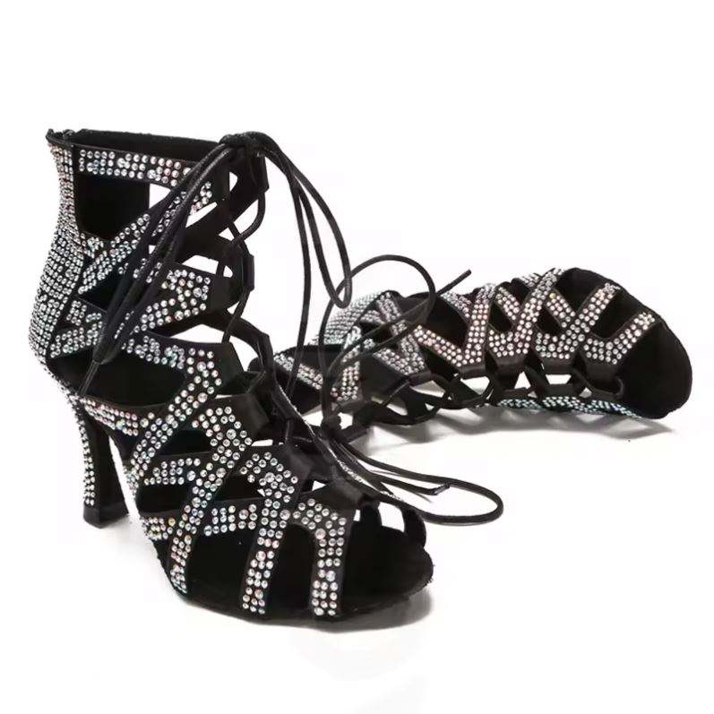 Chaussures de danse sexy et brillantes, bottes de danse de créateur avec strass, escarpins en dentelle de haute qualité, sandales à semelle souple pour femmes, pour mariage et soirée