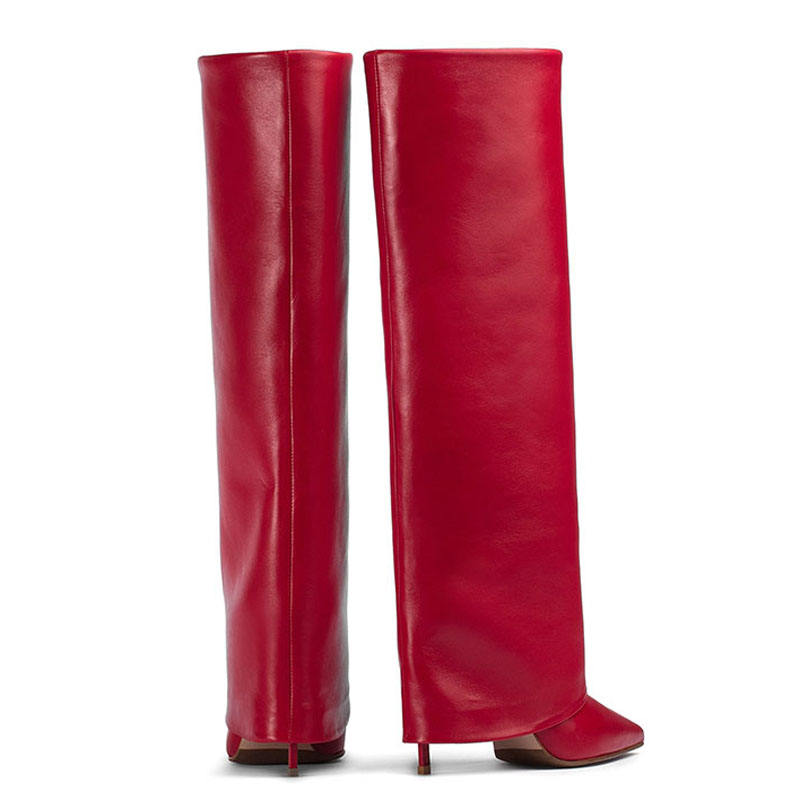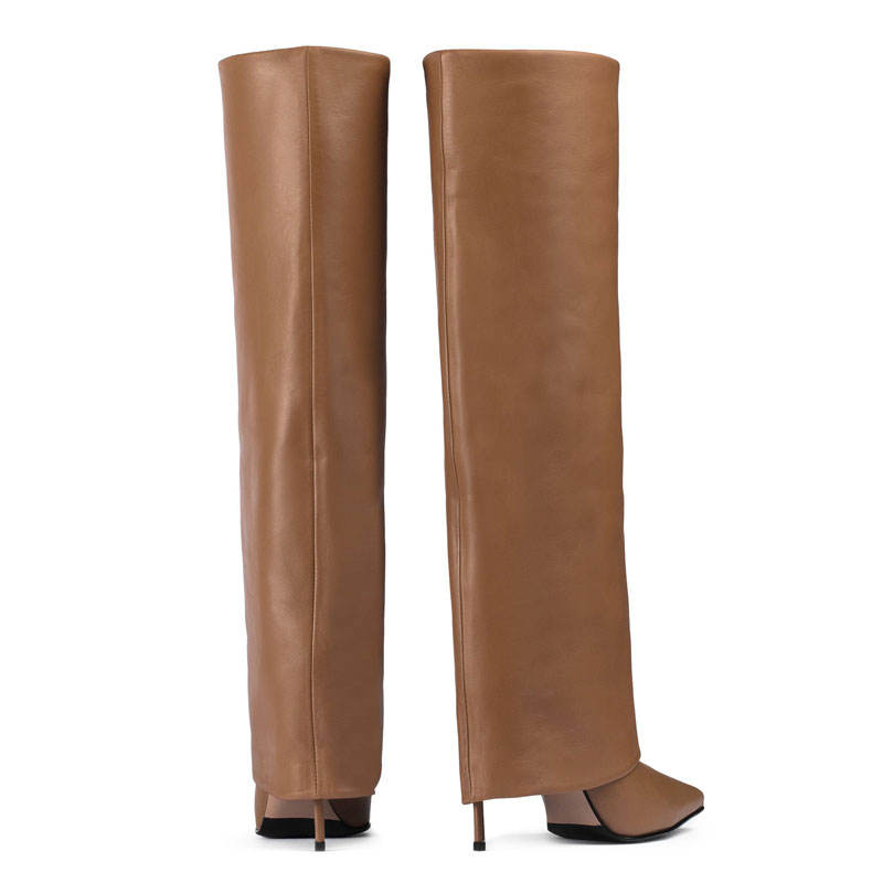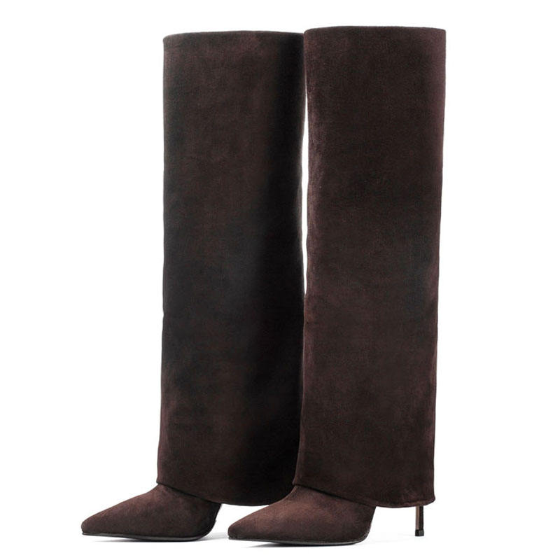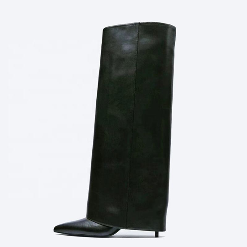 Bottes sexy à talons hauts fins et bout pointu, style stiletto, pour femmes, pliables au-dessus du genou, noires, grandes tailles 35-43
