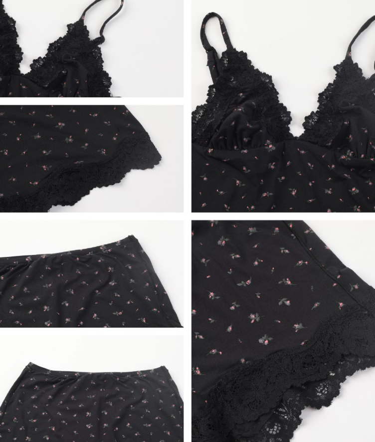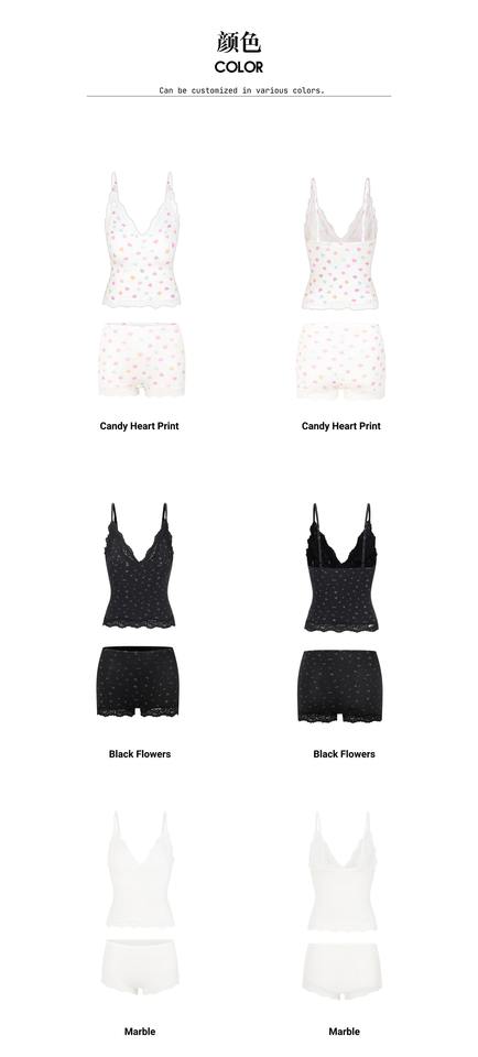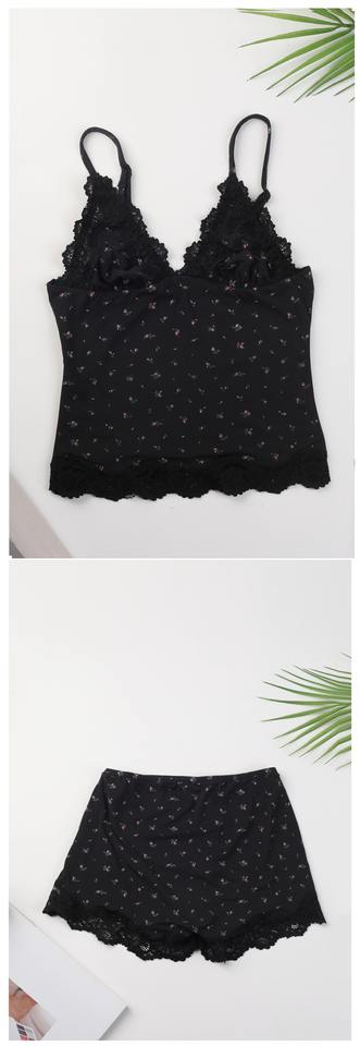 Sexy Triangle Cami&Boy Short Women Lace V-Neck Adjustable Spaghetti Strap Top and Mid Waist Lace Women Boxer Brief Set