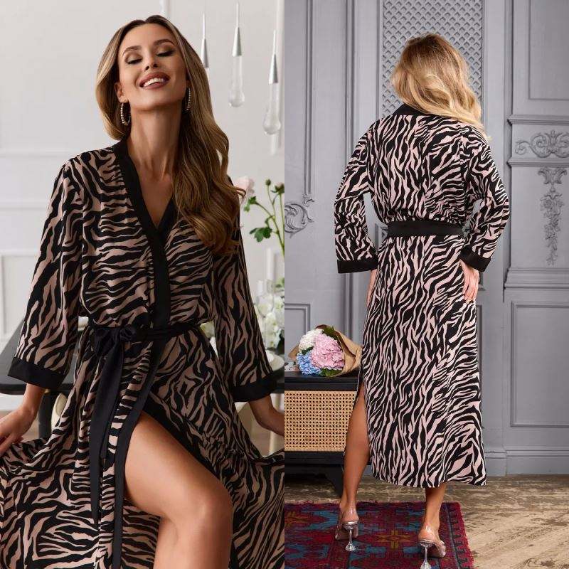 Sfy-y5069 Robe longue sexy, kimono, peignoir érotique à fente latérale, pyjama maxi, vêtements de nuit, robe de soirée en satin, pyjama