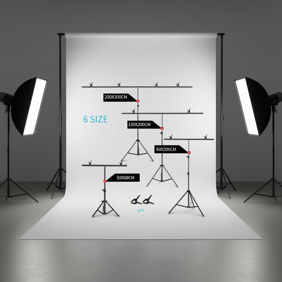 Support de fond de scène en forme de T en alliage d'aluminium pour vidéo et système de support Chroma Key, disponible en 50x68cm, 83x200cm, 150x200cm, 200x200cm