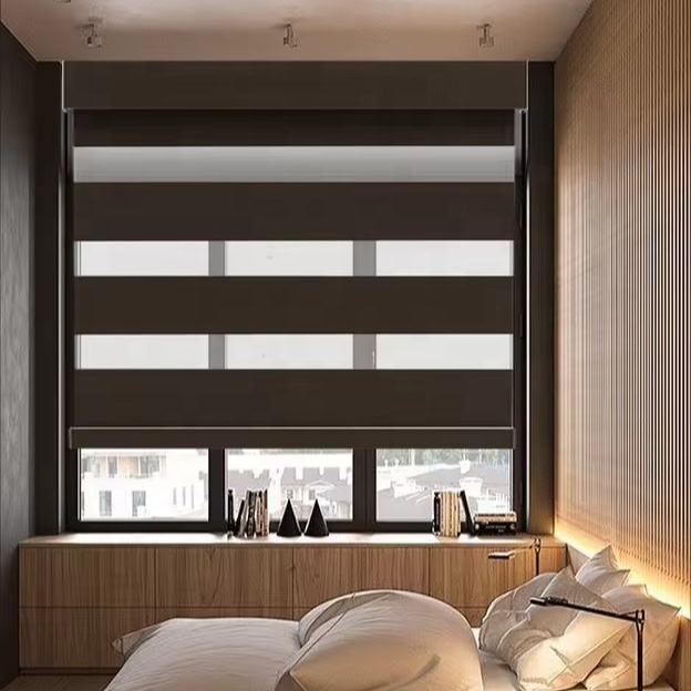 Stores occultants manuels à tringle, système de stores zébrés à double couche en tissu, stores modernes pour bureau à projection