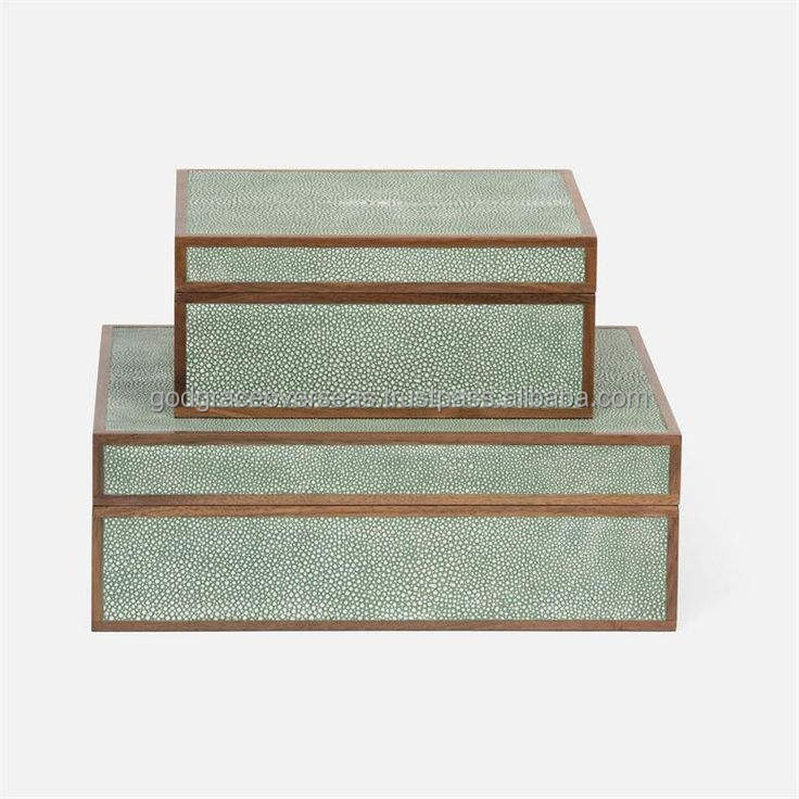 Boîte de rangement de bijoux en cuir Shagreen avec poignée en métal doré Décoration Vintage Fini Shagreen Faux pour la décoration intérieure moderne