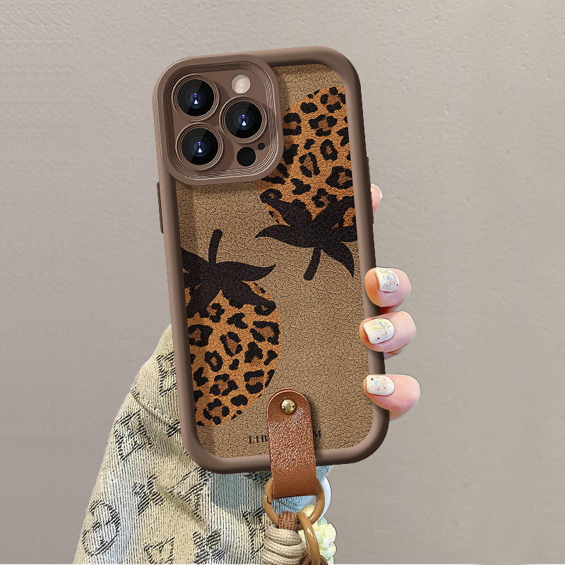 ShanHai Luxury Leopard Print Leather Wristband Suitable for iPhone 16 11 12 13 14 15 Pro Max Shock-absorbing case