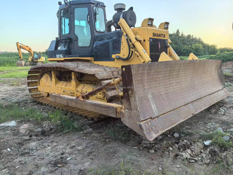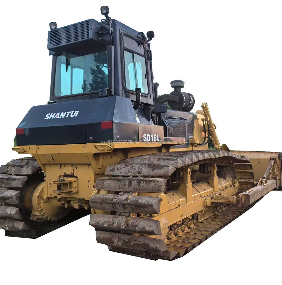 Bulldozer sur chenilles d'occasion Shandong SHANTUI SD16, modèle 2016, poids opérationnel de 16 tonnes, capacité de la benne de 1,38 m³, puissance de 202 kW.