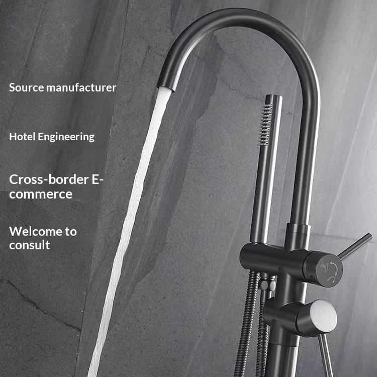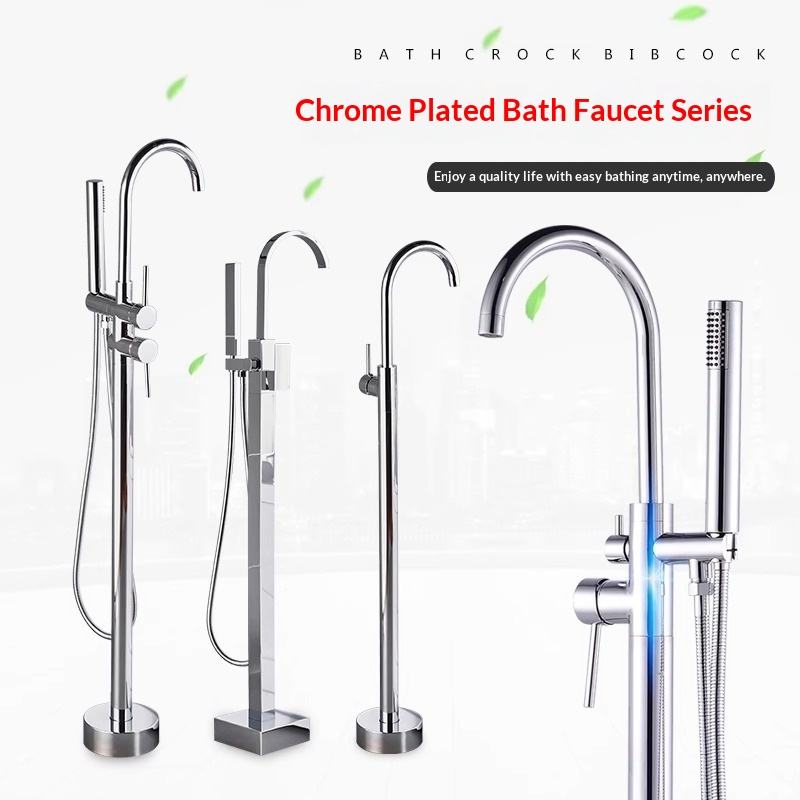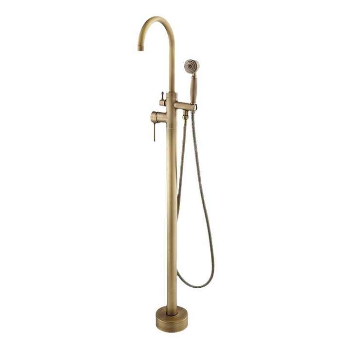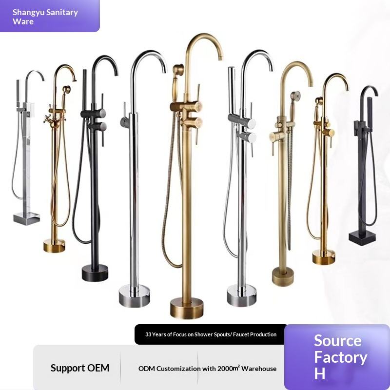Robinet de baignoire sur pied en céramique tout cuivre Shangyu, avec douchette pluie, 1 poignée latérale, colonne verticale en bois, raccord mural