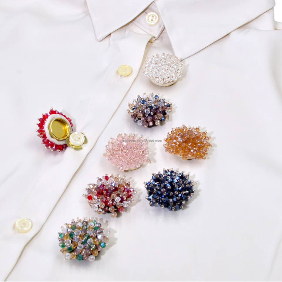 Boutons de chemise en métal doré, couvre-boutons, cristaux Swarovski, ensembles de boutons de manchette et de pince à cravate, broche en cristal perlé faite à la main, boutons de manchette