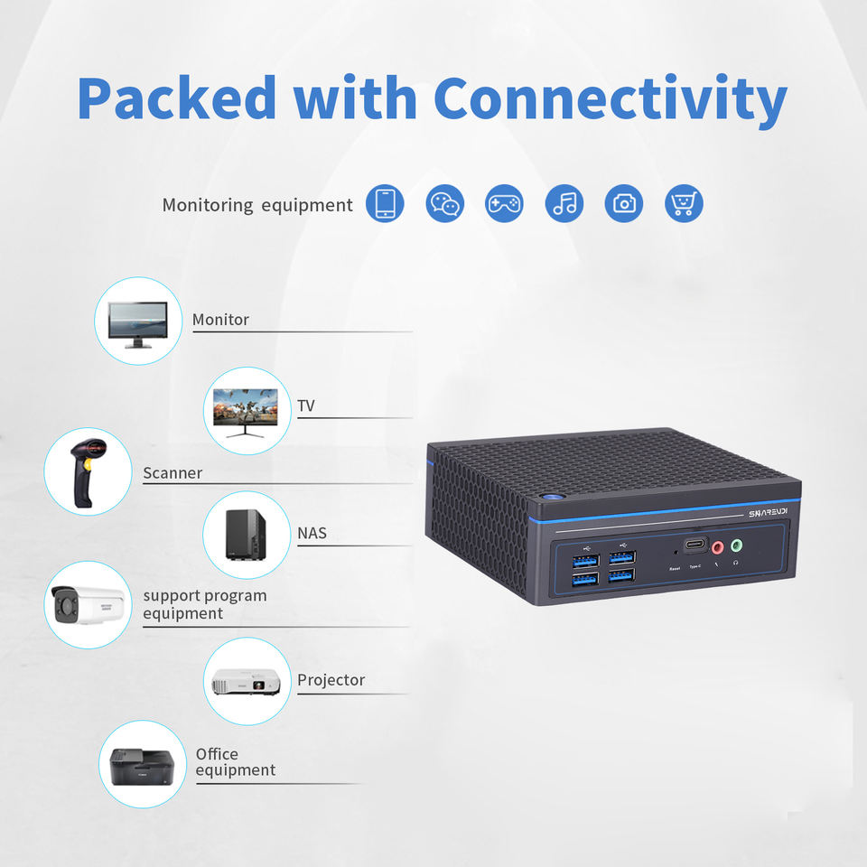 ShareVDI Mini PC pour usage domestique avec 6 ports USB, 2 sorties HD+VGA, 2 ports LAN, mini ordinateur de bureau pour la surveillance des équipements, bureau/entreprise
