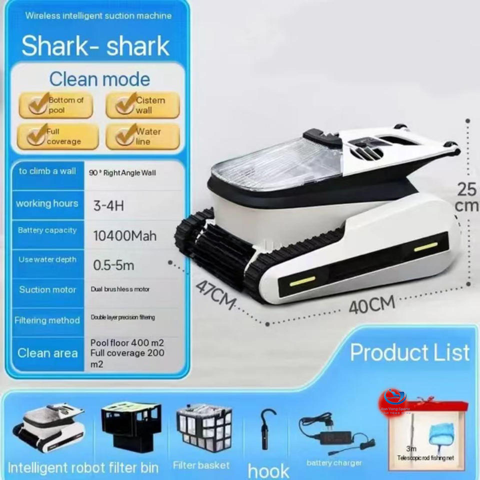Robot de nettoyage de piscine Shark, acier inoxydable de haute qualité, aspiration automatique sans fil pour piscines et spas avec batterie au lithium