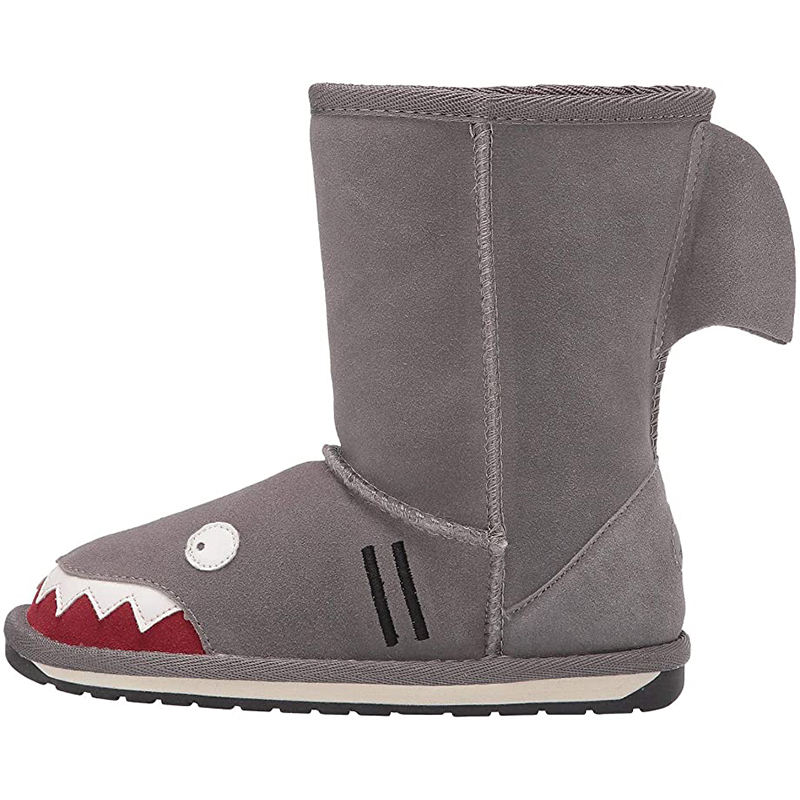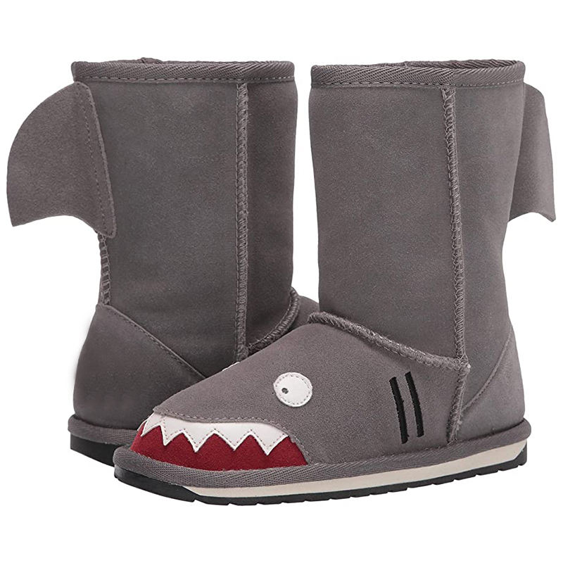 Bottes hautes d'hiver pour garçons, motif de broderie requin, bottes de neige de qualité supérieure, couleur chaude, dessin animé, femmes, enfants, fourrure, Micro tissu, 10 paires