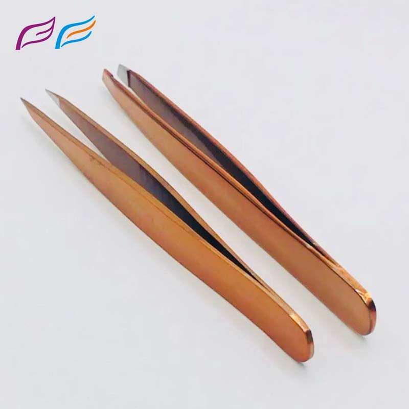 Pince à épiler en acier inoxydable à pointe d'or rose pointu marque privée pince à sourcils à pointe inclinée pour femmes et hommes utilisation de beauté