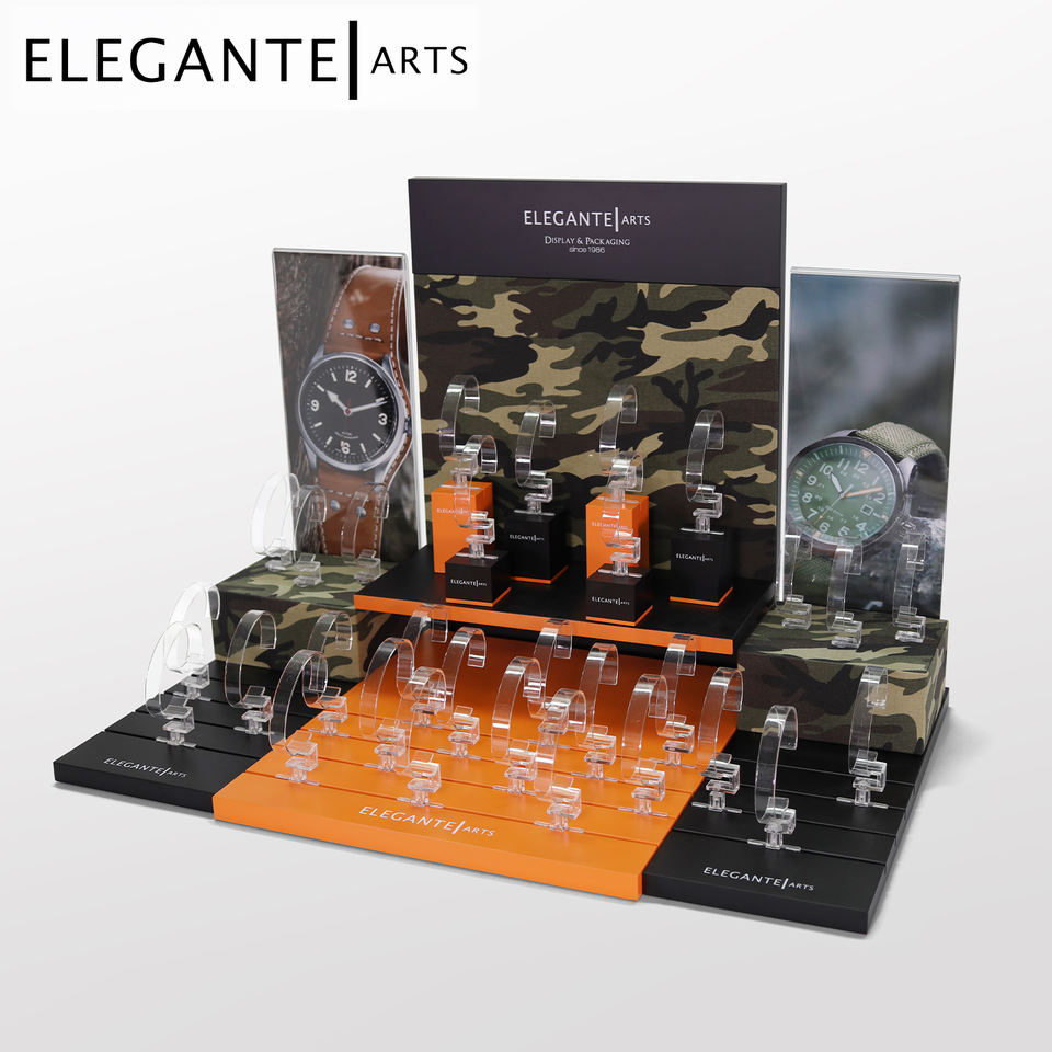 Montre de couleur noire et orange, avec fenêtre d'affichage, style camouflage, support de montre, montre de sport pour hommes