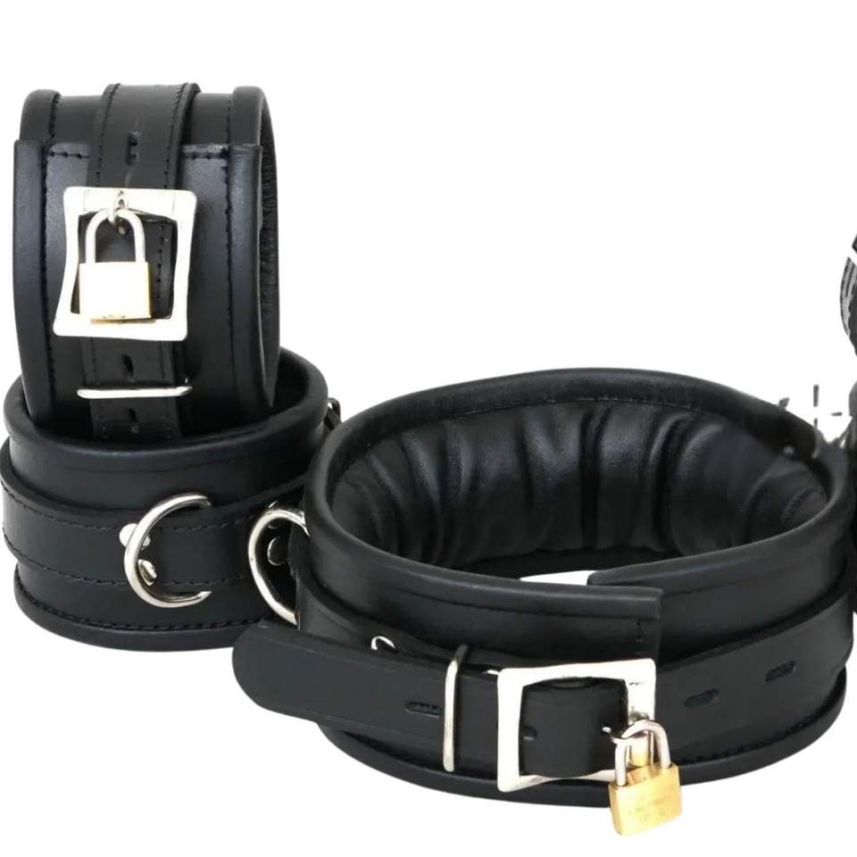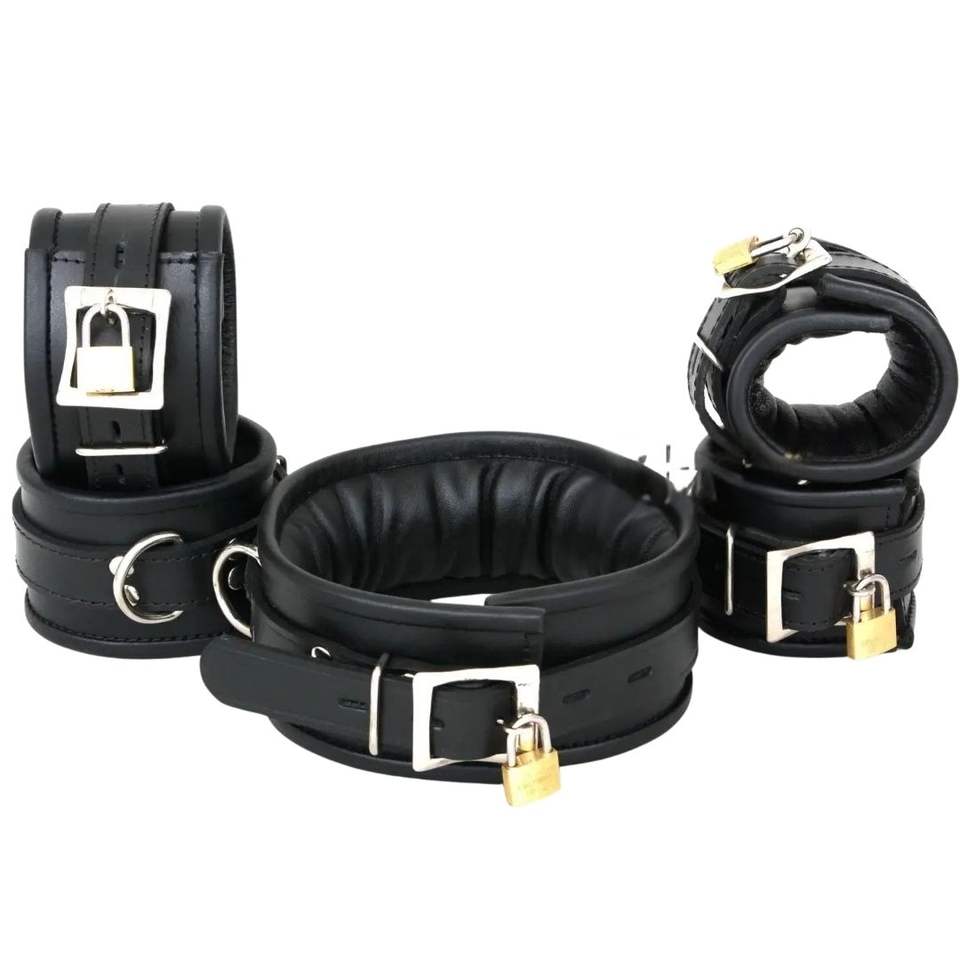 Harnais de contention en peau de mouton imprimé par transfert thermique avec attaches pour poignets et collier, largeur 4,5 cm