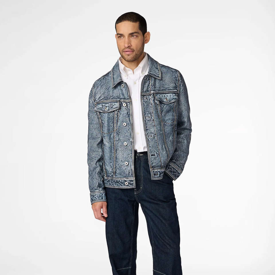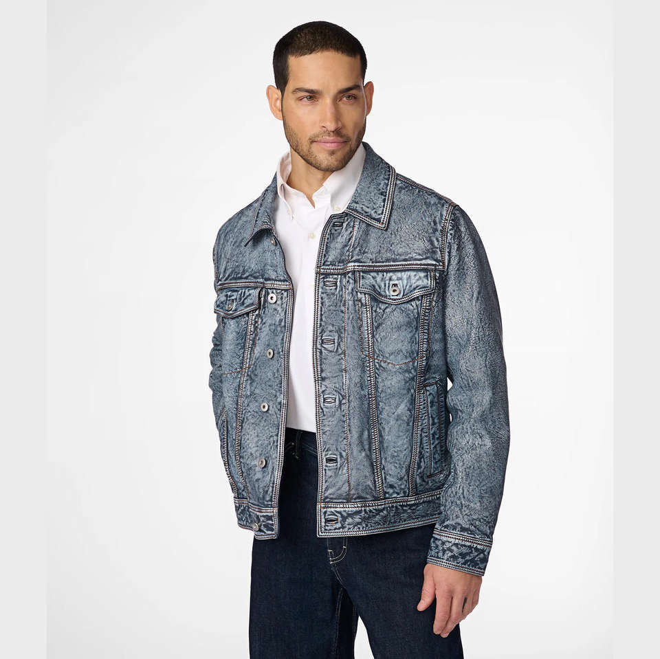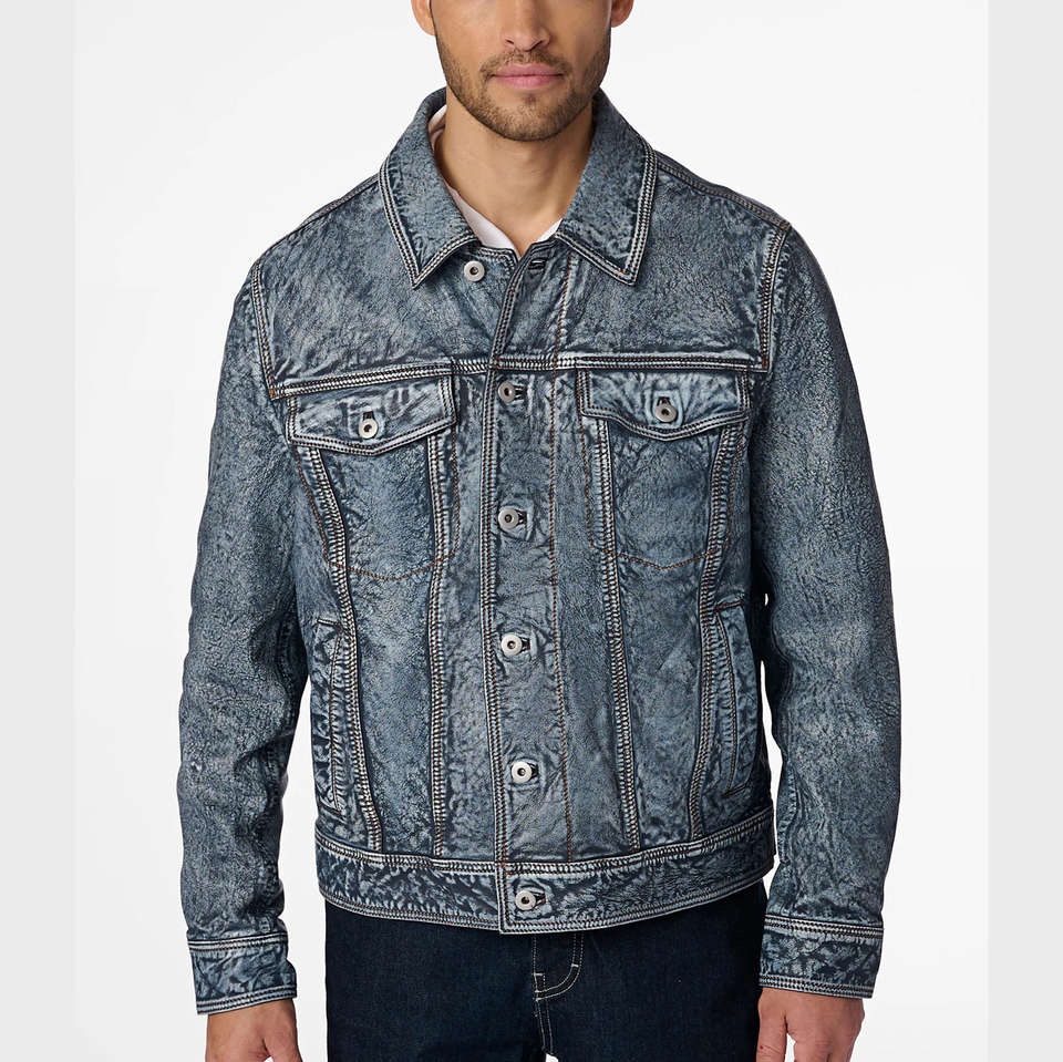 Blouson Bomber Homme Grande Taille en Cuir de Mouton Lavé et Ciré, Col Montant, Imperméable, Écologique, Style Denim, Haute Qualité
