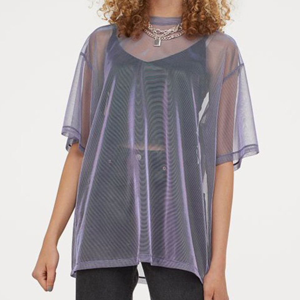 Keywords:Loose Fit Sheer Mesh Tee Shirts Ladies