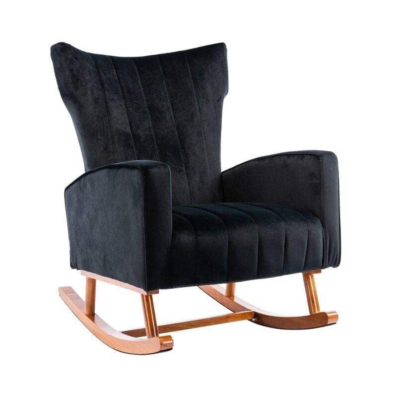 Fauteuil à bascule en bois de Sheesham avec coussin pour siège et dossier | Fauteuil à bascule artisanal en bois massif | Tissu noir