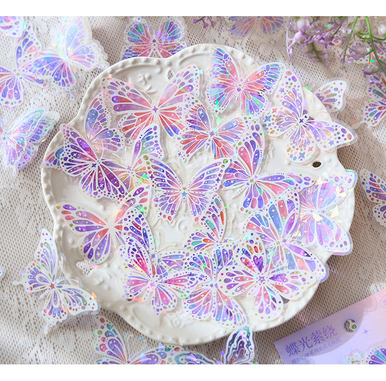 Shell Light Shining PET Sticker Violet Papillon Die Cut Sticker PK20 Pour DIY Artisanat Décor, Fabrication De Cartes, Scrapbooking, Journal