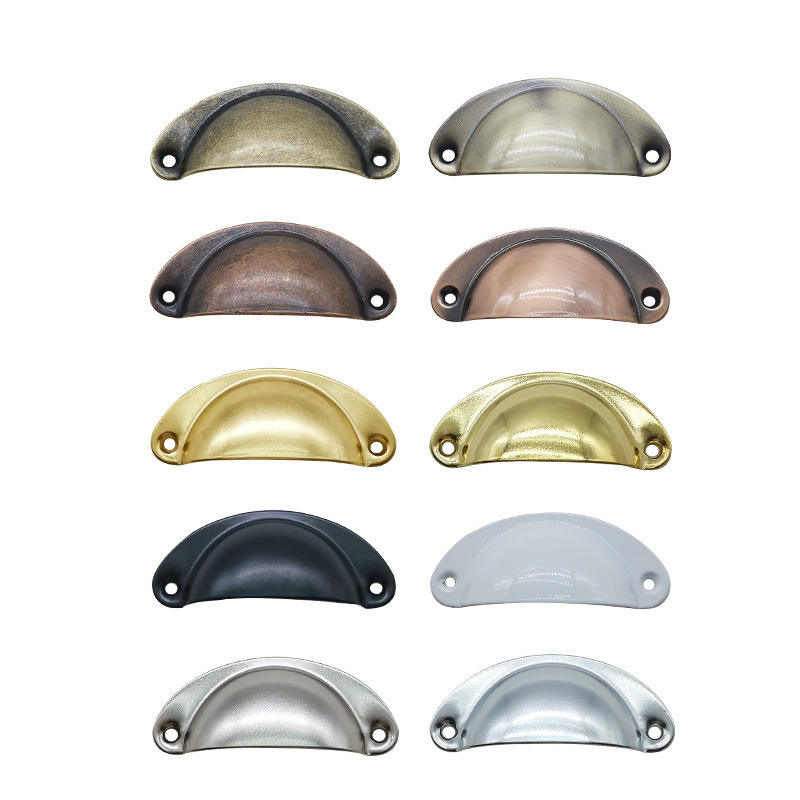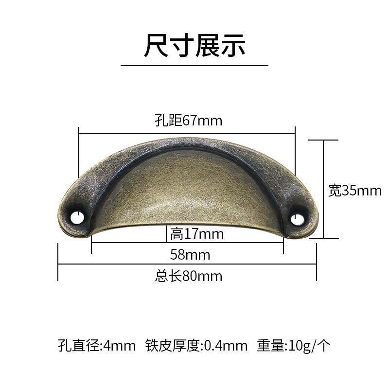 Poignées de tiroir en forme de coquille, ovales, en fer, style chinois antique, couleur bronze, poignée de meuble durable