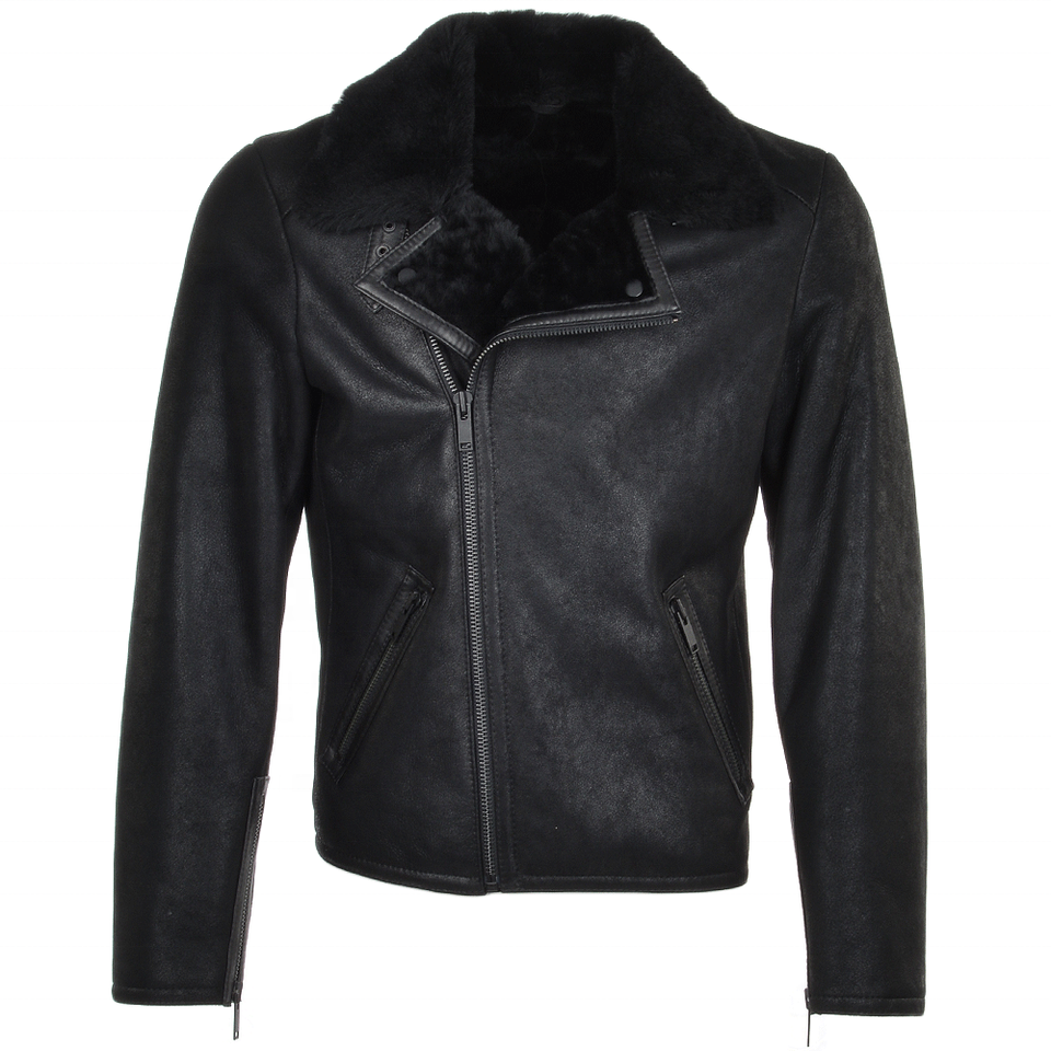 Shemax 2023 Top vente de haute qualité personnalisé en gros toutes les couleurs toutes les tailles côté Zip Biker en peau de mouton pilote veste noir