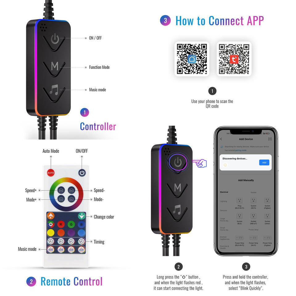 Contrôle via l'application / Télécommande / Bouton manuel