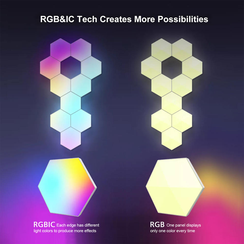 Lumière hexagonale intelligente WiFi Tuya RGBIC 10W IP65 avec télécommande et assistance vocale pour la domotique de Shenzhen PST-HL10