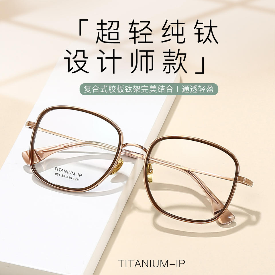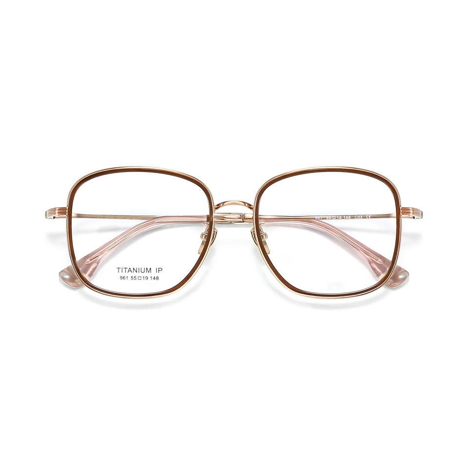 Monture de lunettes rectangulaire en titane pur de Shenzhen, monture large dorée, lunettes optiques unisexes 55-19-148