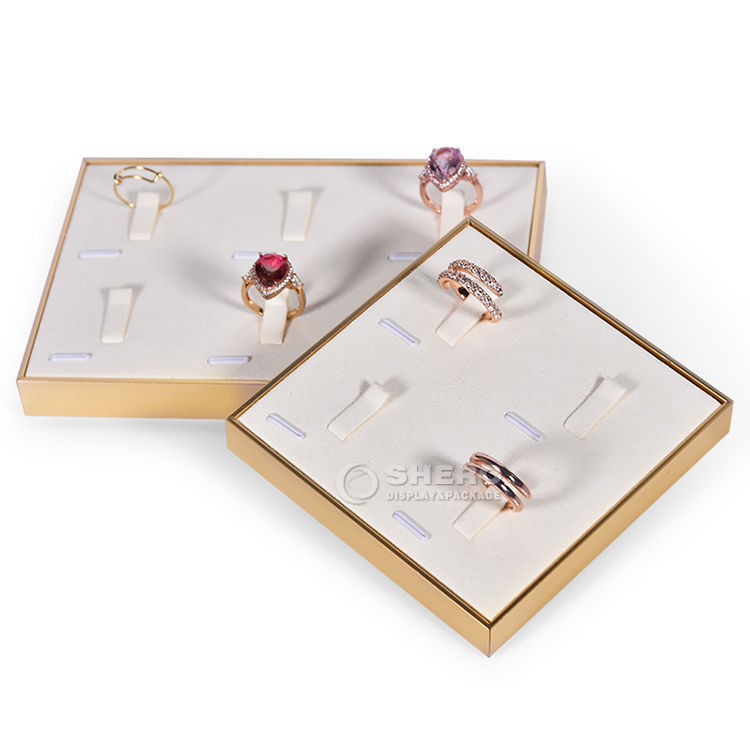 Shero Plateau de présentation de bijoux personnalisé Anneaux en microfibre Accessoires de présentation de bijoux Présentoir de bijoux en métal pour magasins Couleur rose