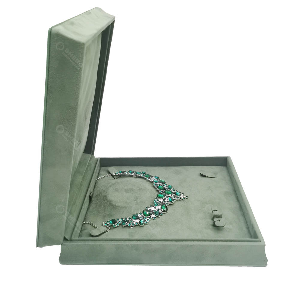 Boîte à bijoux mode Shero en cuir PU vert emballage personnalisé de luxe pour bijoux en velours boîte à bagues boîte cadeau pour bijoux avec logo