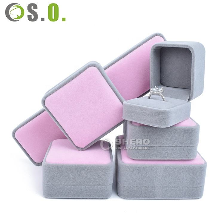 Shero haut de gamme velours bague bijoux coin rond pendentif bracelet coffret bijoux bracelet boucle d'oreille emballage coffret avec logo