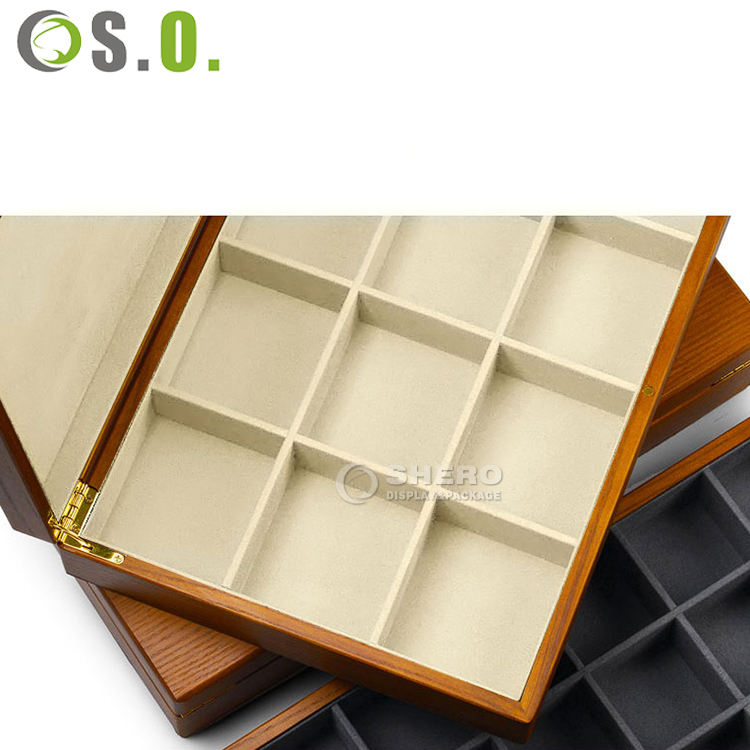 Boîte à bijoux Shero Luxury Premium haut de gamme en bois massif multi-compartiments, couleur et taille personnalisées pour ranger bagues, bracelets et colliers