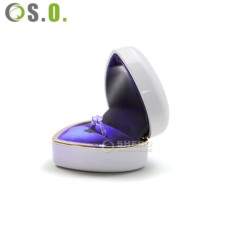 Boîte à bijoux de style cœur de haute qualité fabriquée par Shero, emballage personnalisé pour boîte à bijoux avec LED, boîte à bague de luxe, boîte à diamants