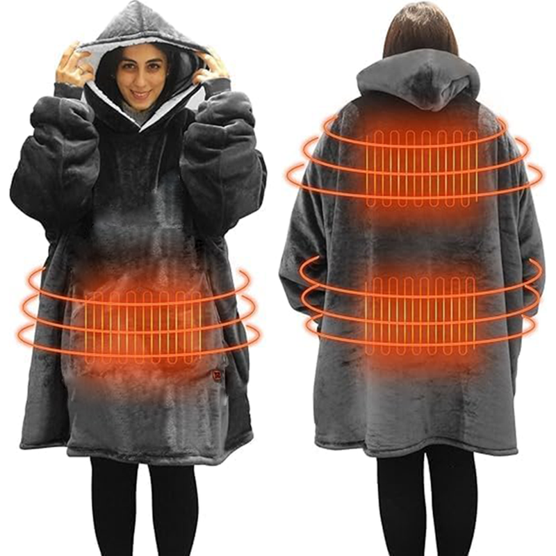 Sherpa Fleece Flannel Giant Pocket Sleeves 3 Heat Settings 3 Hours Auto Shut-off USB Heated Electric Wearable Hooded Blanket