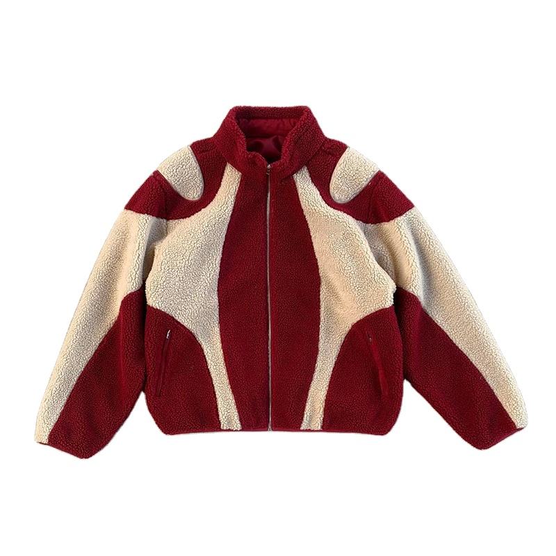 Vestes en polaire sherpa, fermeture éclair en laine, imprimé à motifs, veste d'hiver respirante, sans couture, coton et polyester, veste pour homme