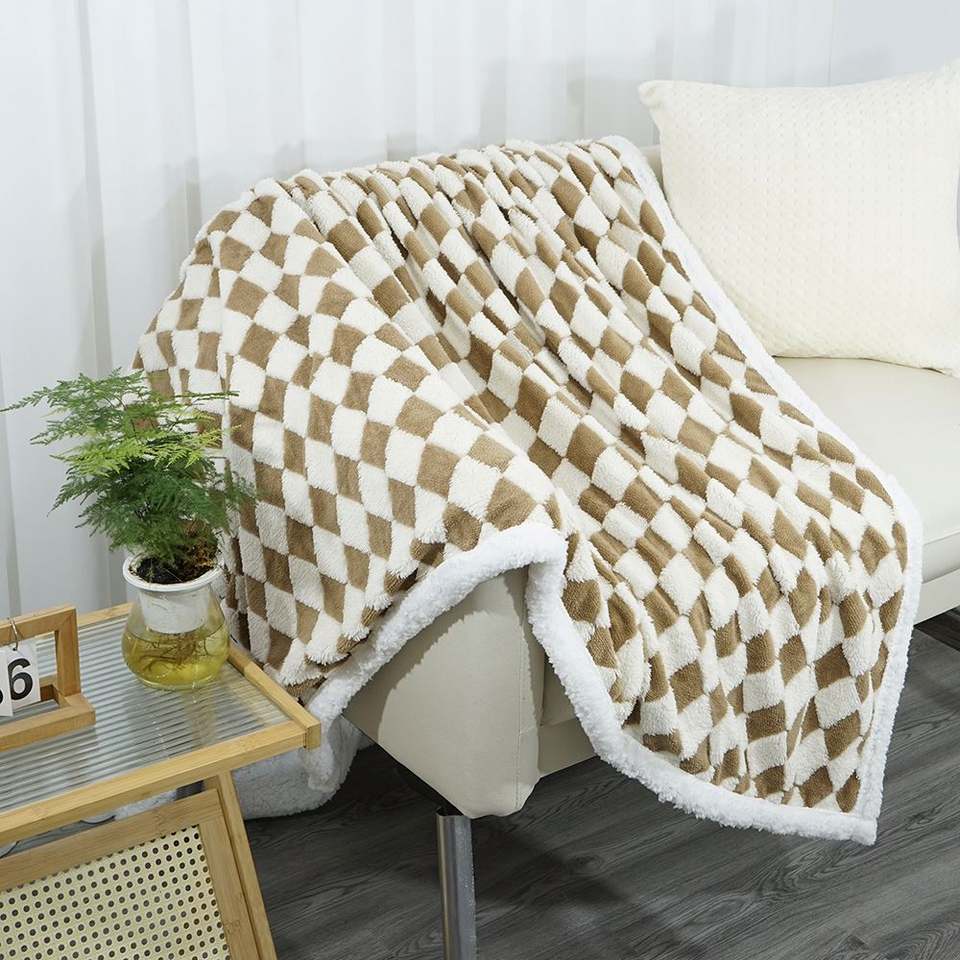 Sherpa Throw Blanket Fleece Blanket with Checkered Pattern Soft Thick Blanket for Couch, Bed, Sofa Warm and Cozy for All Seasons