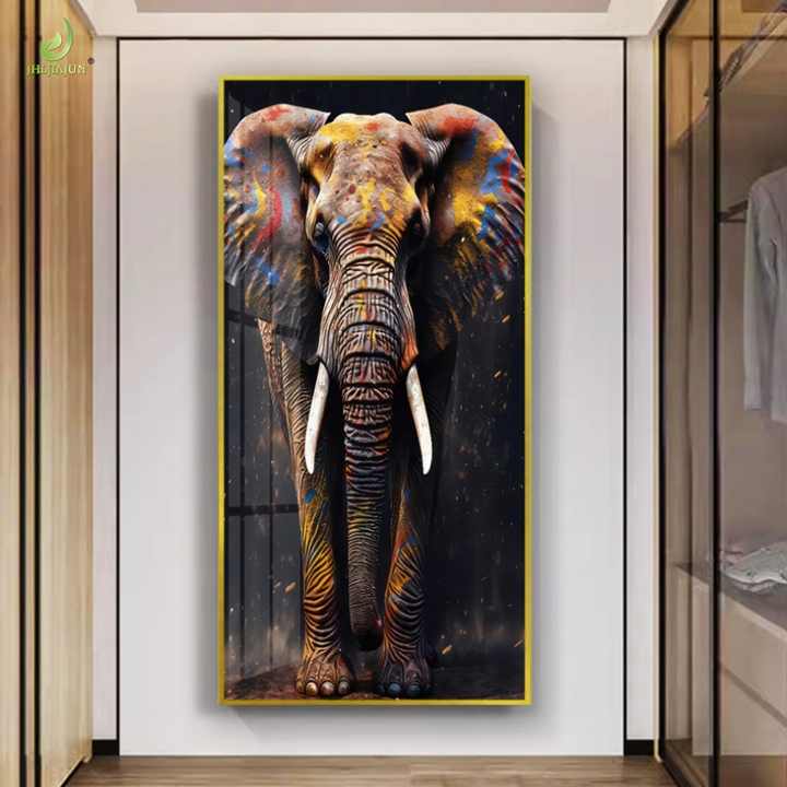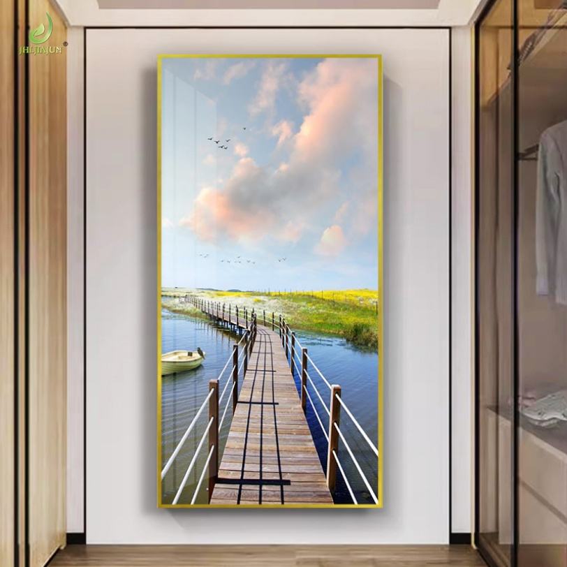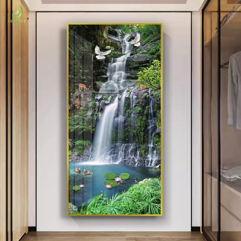 Tableaux suspendus décoratifs haut de gamme en porcelaine cristalline scintillante avec éclairage LED pour salon de luxe, peinture à l'huile