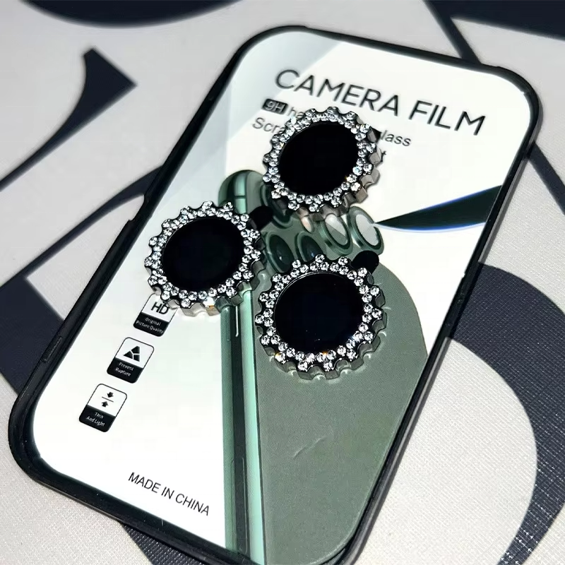 Protecteur d'objectif d'appareil photo en verre trempé ultra-fin à dureté 9H anti-traces de doigts Shining Diamond Gear pour 13/14/15/16/17 Pro