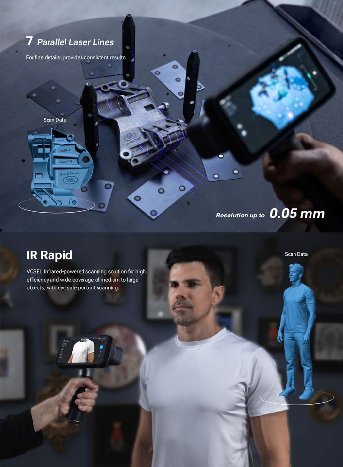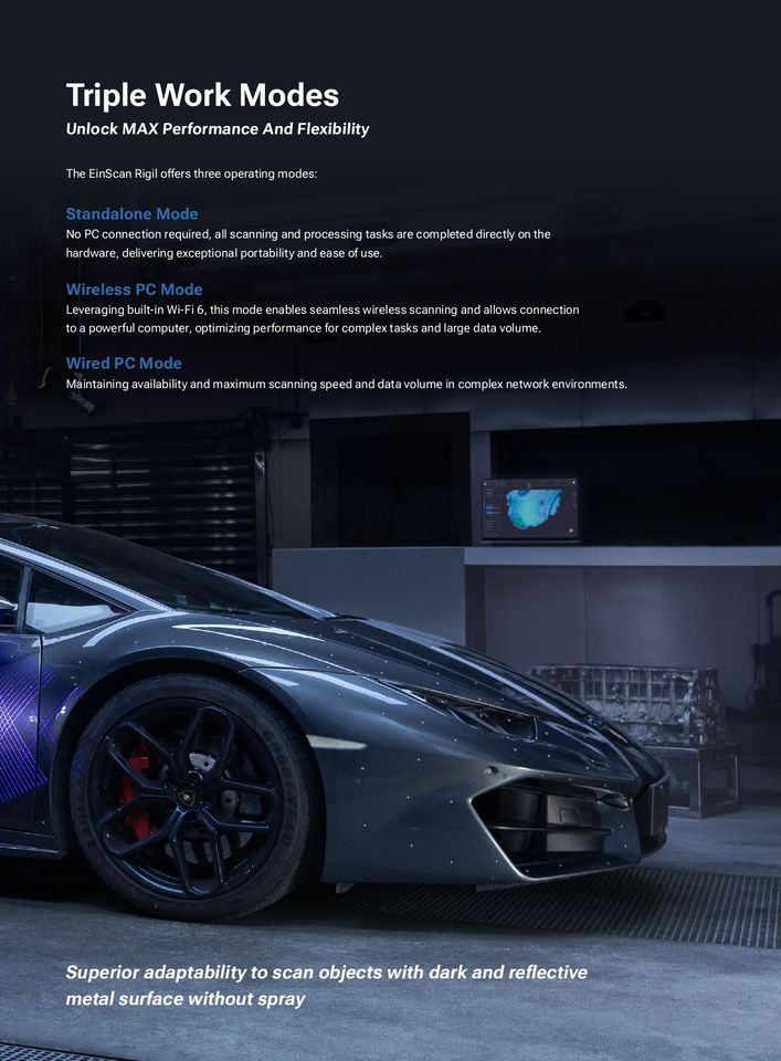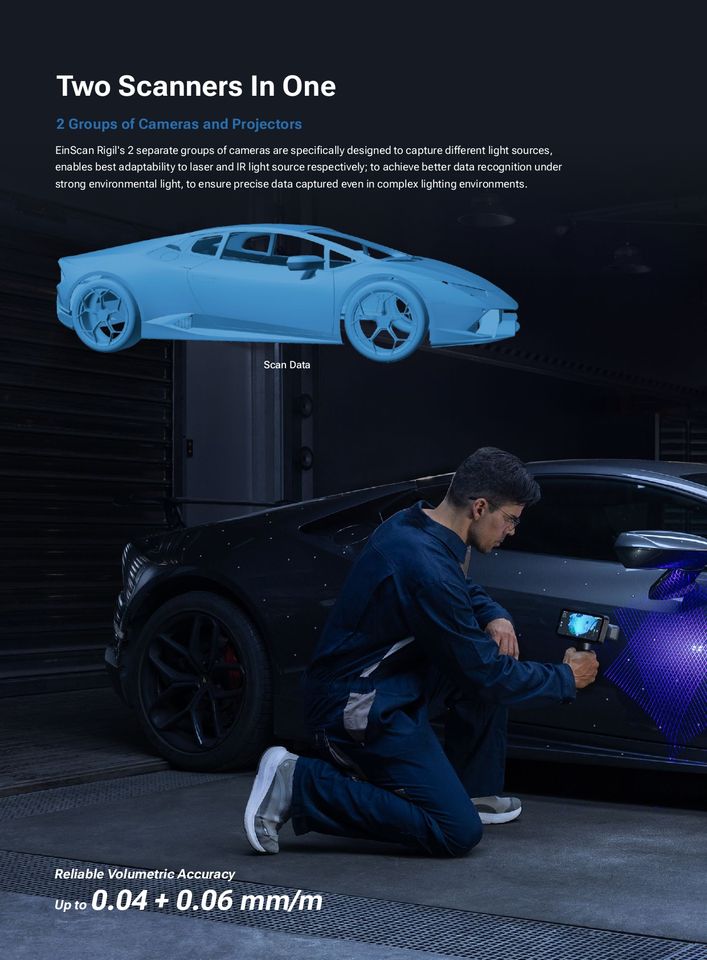 Scanner 3D portable détachable Shining EinScan Rigil, système de numérisation tout-en-un, suivi dynamique, métrologie, scanner 3D