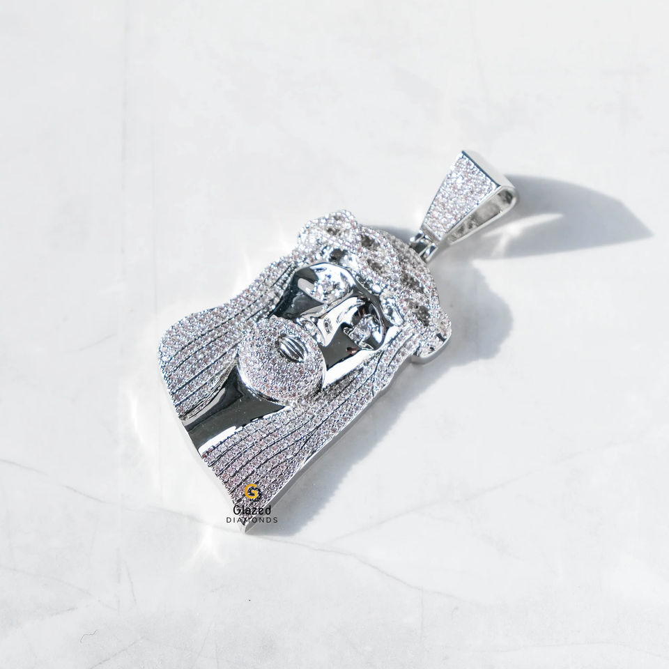 Pendentif Shinny Hip Hop Jesus Face entièrement glacé orné de diamants ronds brillants Moissanite VVs en or blanc 10 carats D incolore