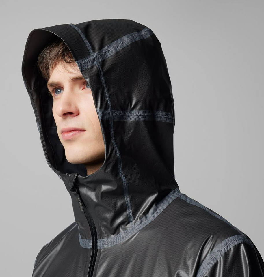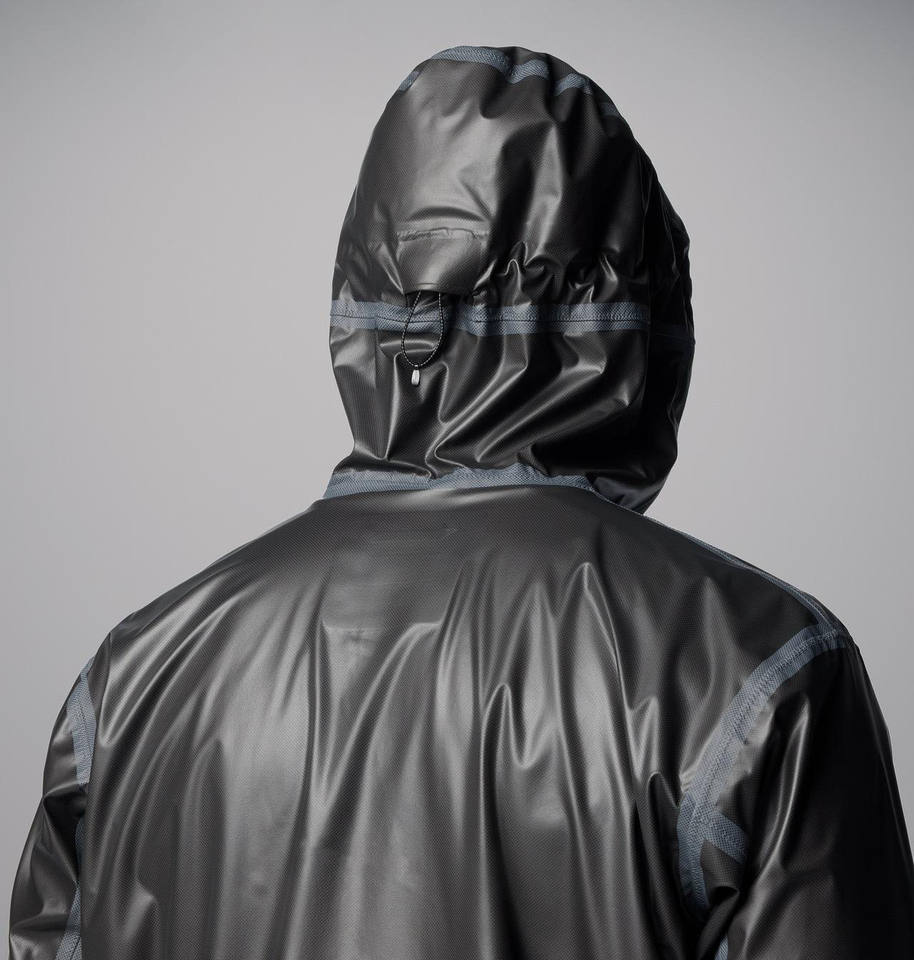 Veste de pluie imperméable noire brillante pour homme, respirante, coupe-vent, à capuche, zippée, élégante, pour la randonnée